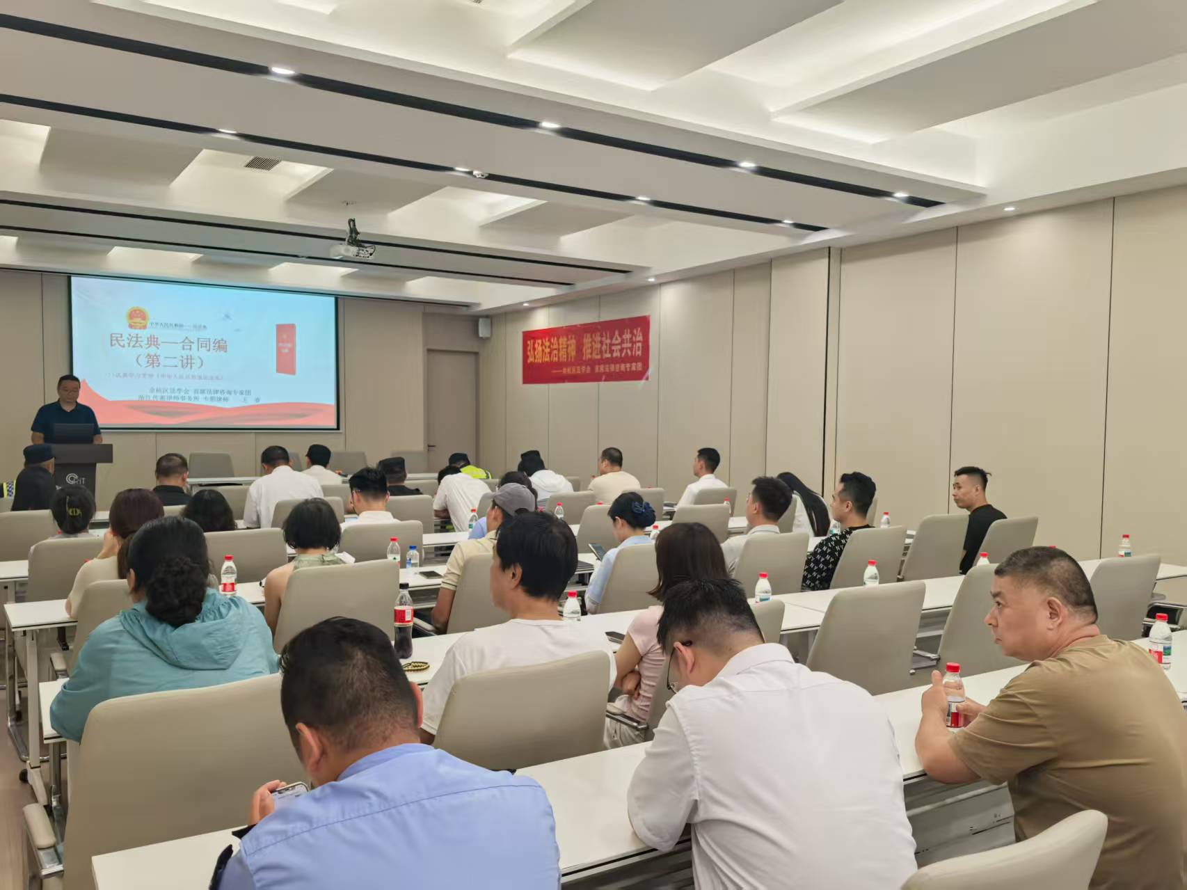 2025年7月16日下午,一场由余杭区法学会指导、沿山河公法驿站主办及传衡所协办的干货满满的民法典《合同编》知识讲座在杭州未来研创园鸿雁园区如期举行。余杭区法学会基层联系点传衡所派驻沿山河公法驿站的王睿律师担任本次讲座的主讲人。